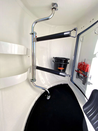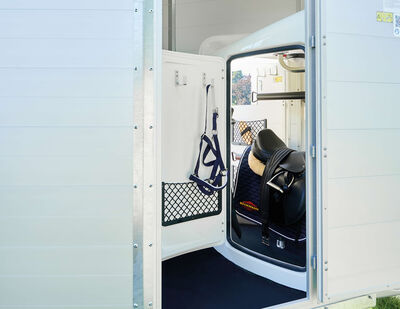 De seriematige highlights, zoals bijvoorbeeld het veiligheids-boxstangen-systeem (MSS), de massieve hoogwaardige volledig aluminiumvloer of de zadelkamerconcepten voldoen aan de hoge eisen van paard en ruiter. Daarbij overtuigt het onmiskenbare Böckmann-design over de hele linie.